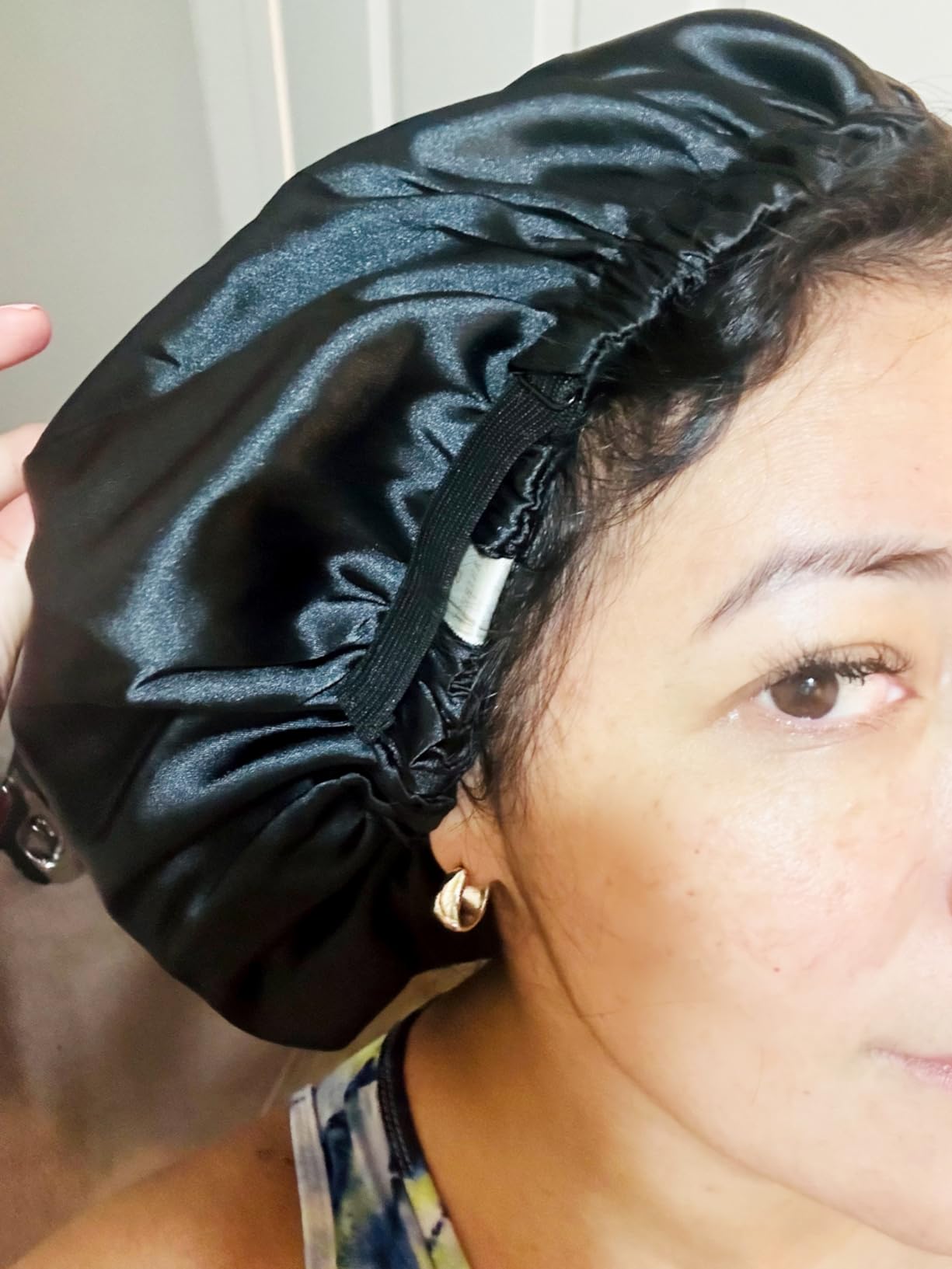 Das DreamCap sitzt locker, aber sicher, und hält deine Haare sanft zusammen, ohne sie zu quetschen.