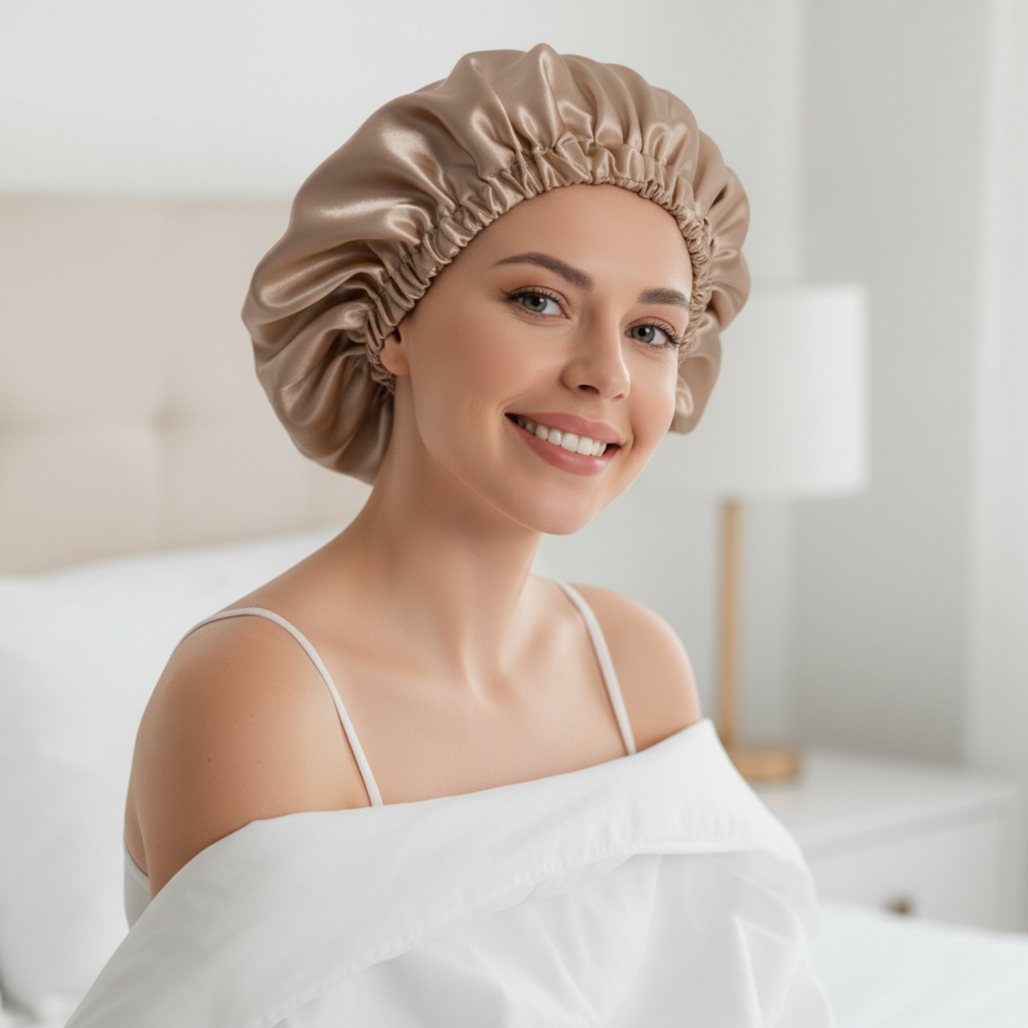 Sanft zu Haar & Haut – die ganze Nacht. Das DreamCap reduziert Reibung auf dem Kissen, bewahrt Feuchtigkeit und schützt deinen Style im Schlaf oder unterwegs.